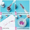 Levin Glass Dip Fountain Pen Holder Set Crystal Sparkling Signature Drawing Calligraphy Writing Pen with Bottle Ink and Pen Holder Crystal Dip Pen (Random Ink color and pen design)